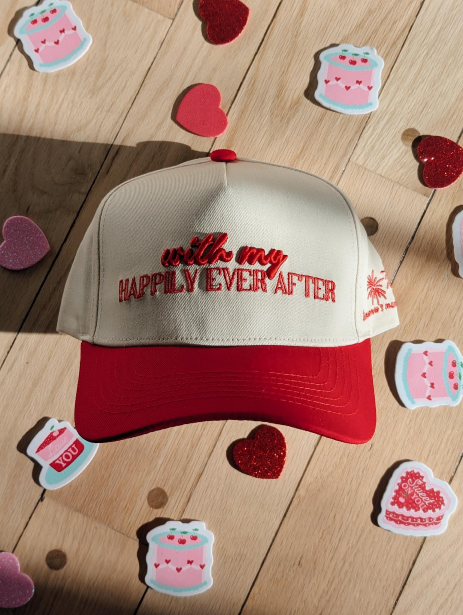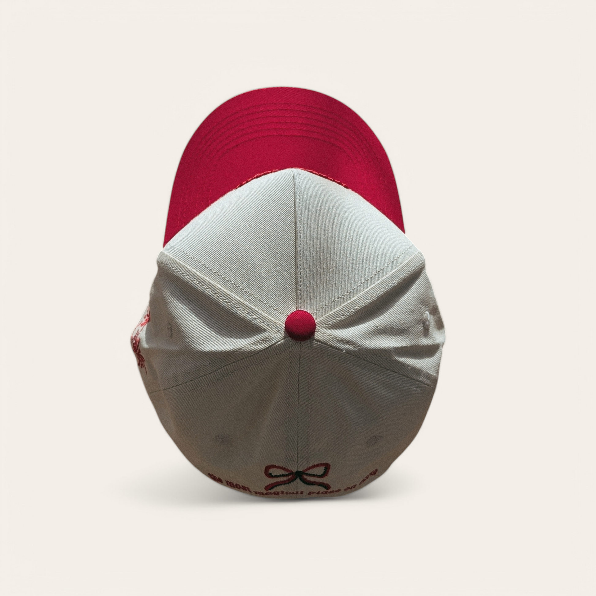 The only thing better than being in the happiest place on earth is being there with your happily ever after. Park in style with this statement hat. Back reads "the happiest place on earth" with an embroidered bow detail